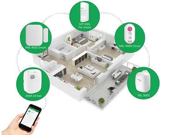 Sistema de alarme completo e inteligente, cobrindo todo o perímetro.